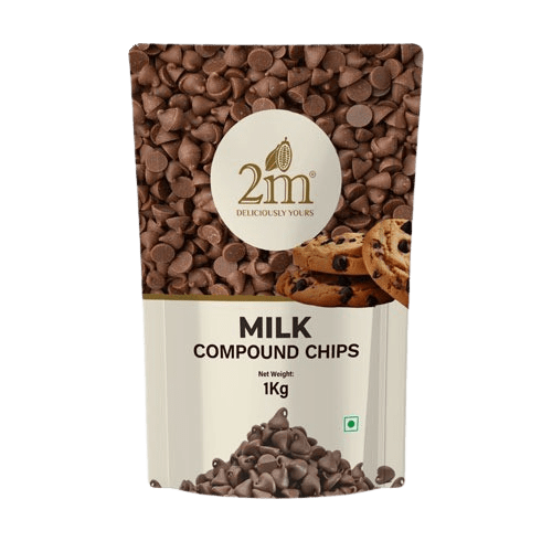2M Compound Chocolate Chips 1kg are premium quality baking chips specially designed for professional and home bakery use. These compound chocolate chips are available in White, Milk, and Dark variants, making them perfect for a wide range of dessert and confectionery applications.